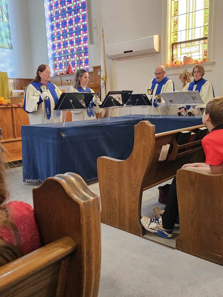 At this time we do not have an active bell choir. We are hopeful that will change in the future as our youth show an interest in ringing and our numbers grow once again.